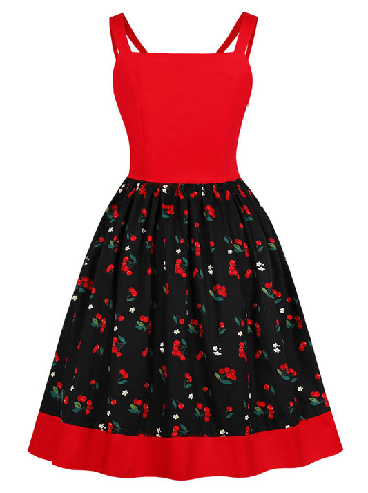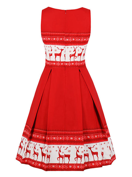 1950 Sexy Sleeveless Round Neck Printed Christmas Party Dress