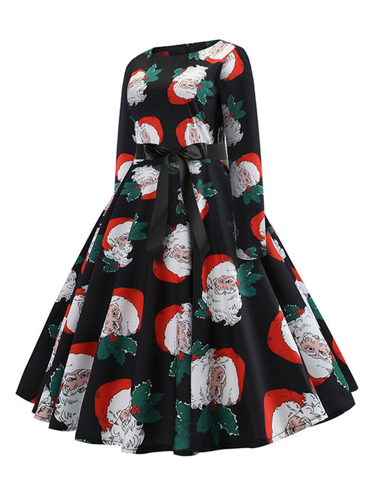 1950 Retro Long Sleeve Santa Pattern Tea Swing Cocktail Dress