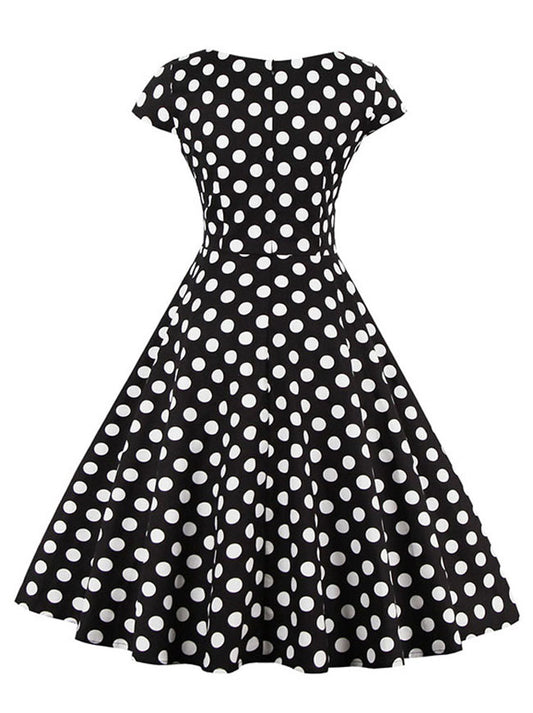 1950's Vintage Casual Polka Dot Cocktail Holiday Party Dress