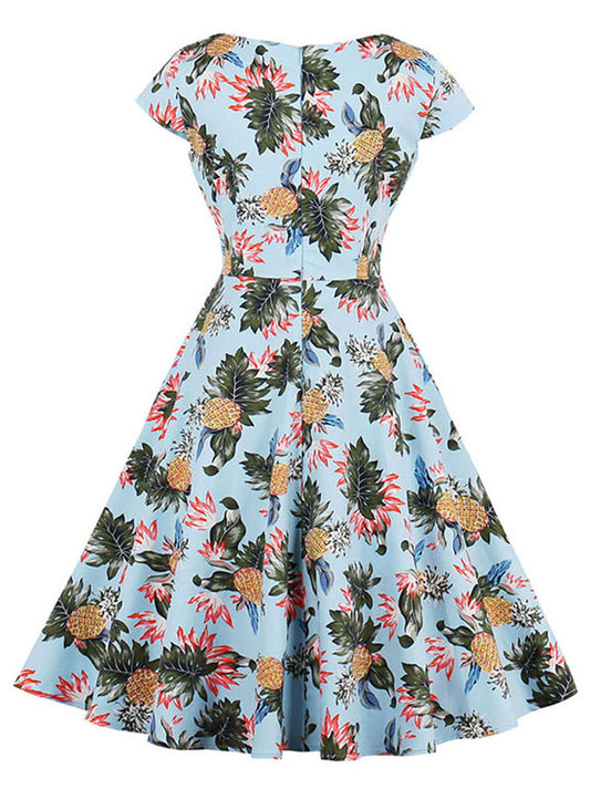 1950's Vintage Pineapple Pattern Summer Casual Swing Dress