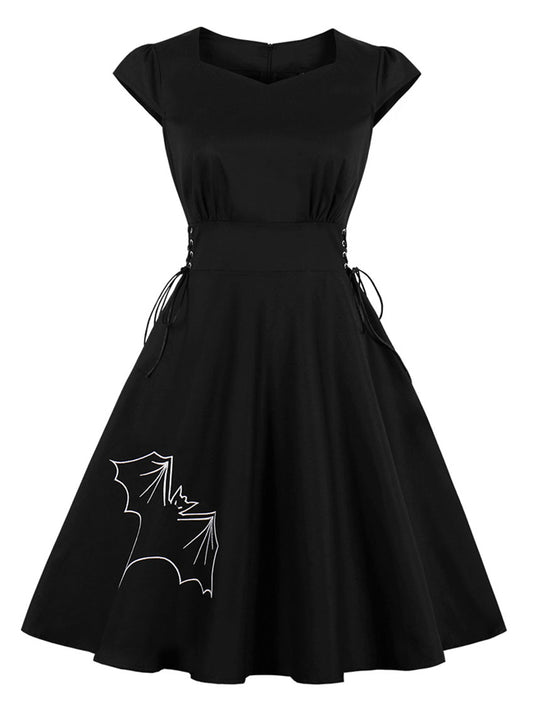 Elegant Vintage High Waist V-Neck Short Sleeve Halloween Dress