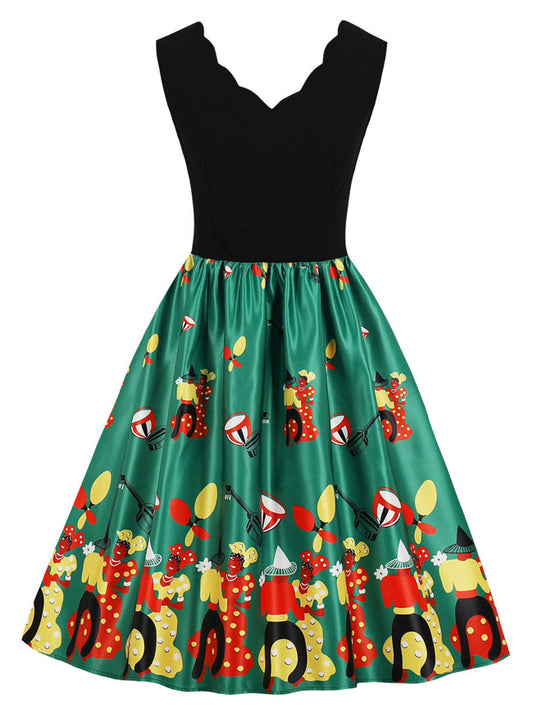 Elegant Vintage Casual V-Neck Sleeveless A-line Swing Dress