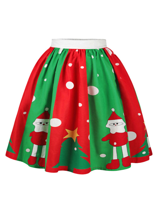 Christmas Santa Pleated Flared Short Midi Swing Skater Skirt