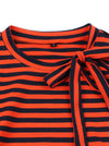 Vintage casual short sleeve swing dress: short sleeve, round neck, decorate with the lace-up and unique keyholes design on the dress, above knee length, pullover closure, A-Line silhouette high waist dress. The whole vintage dress is overlaid with classic regular striped pattern.