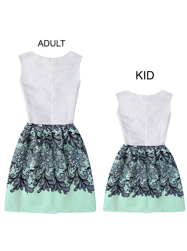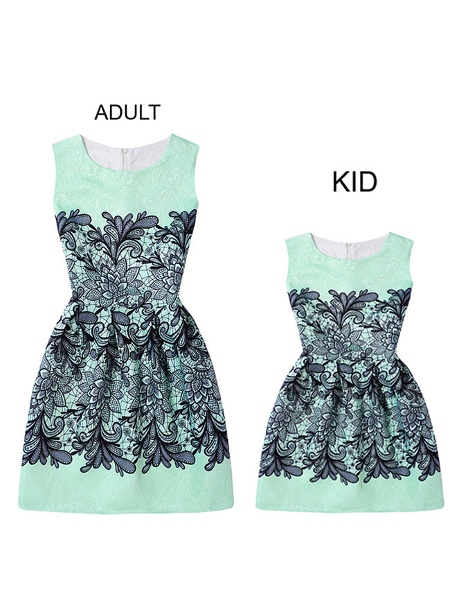 Jacquard Sleeveless A-Line Party Floral Print Casual Dress with Zipper for Adult and Child