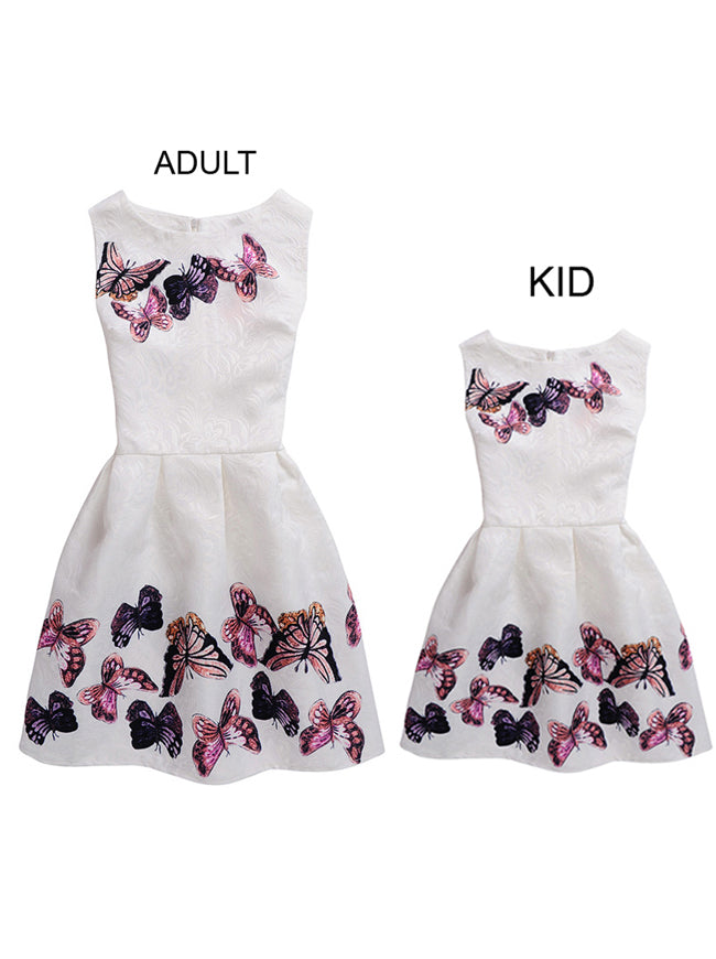 The Fancy Dress for Family Features with Sleeveless, Round Neck, High Waisted, Jacquard and Butterfly Pattern, Concealed Zipper Closure at Back, A-Line Mini Length Style. Suitable for Family Clothes Mating Outfit, Party Dresses, Casual Dresses, Out Dresses and Other Occasion.(Please Choose Kid and Adult Size Separately If Matching Family Clothes.)