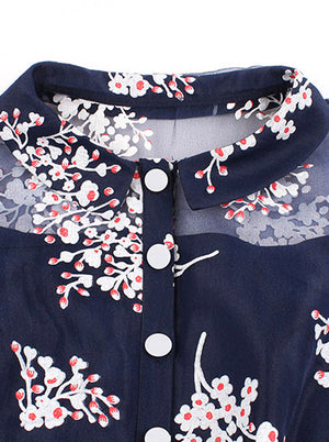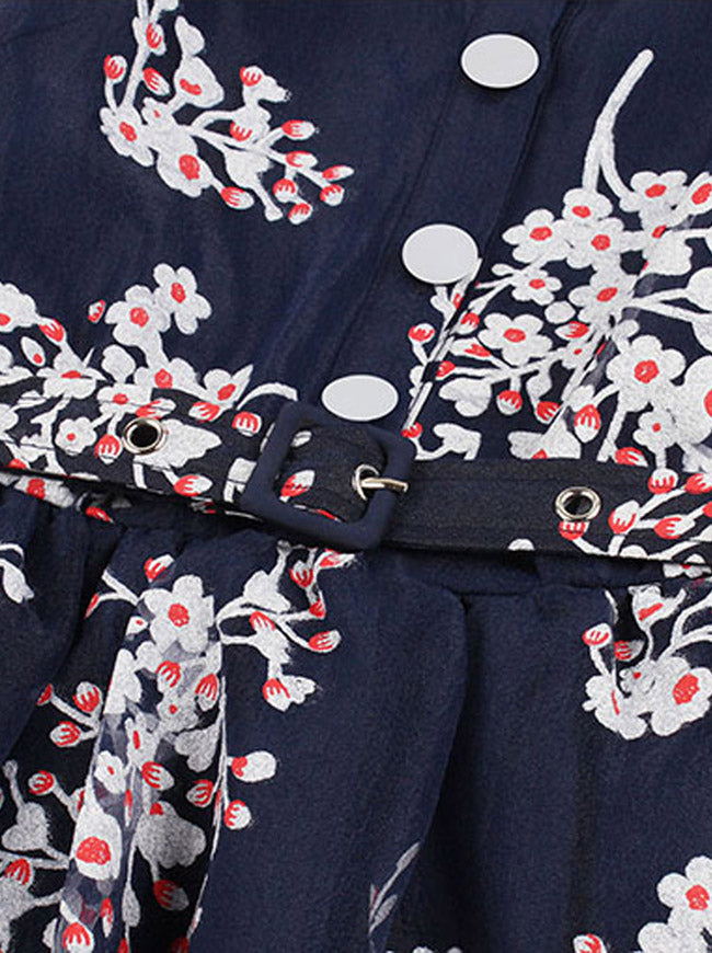 This vintage swing summer dress features: sleeveless, lapel and high waist design, beautiful floral print pattern cover the whole dress, single breasted in front, matching detachable belt.