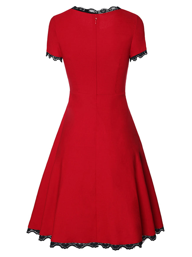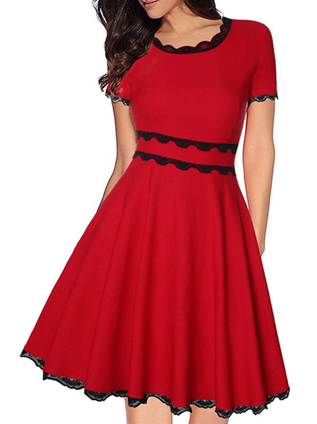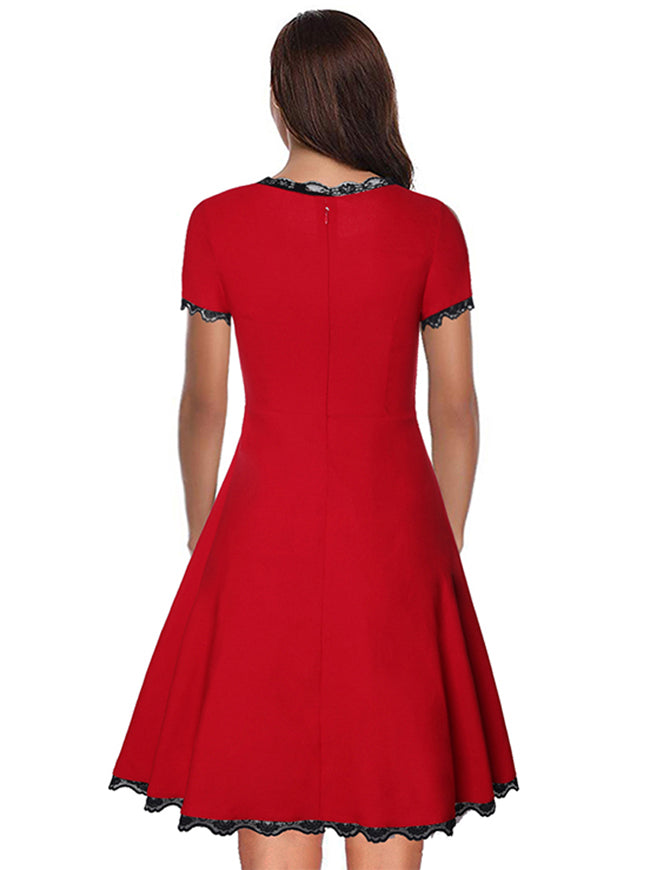 Elegant Short Sleeves Lace Flared A-Line Cocktail Swing Dress