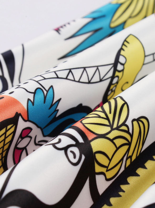 Women's elegant patchwork vintage style 1950s swing dress features: sleeveless, v-veck, zipper closured at back, high waist design, classic 3d print pattern cover the full cycle swing skirt.
