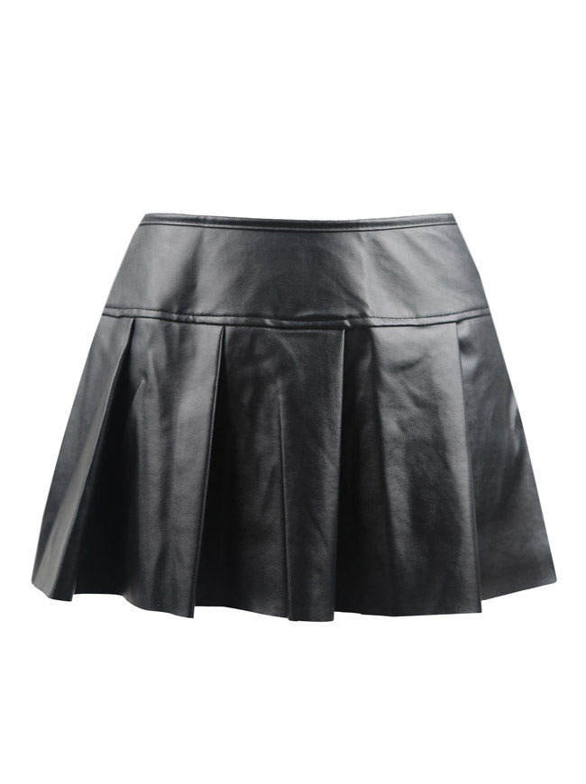 Faux Leather Pleated Mini Skirt with Side Zipper Closure.