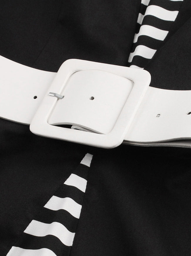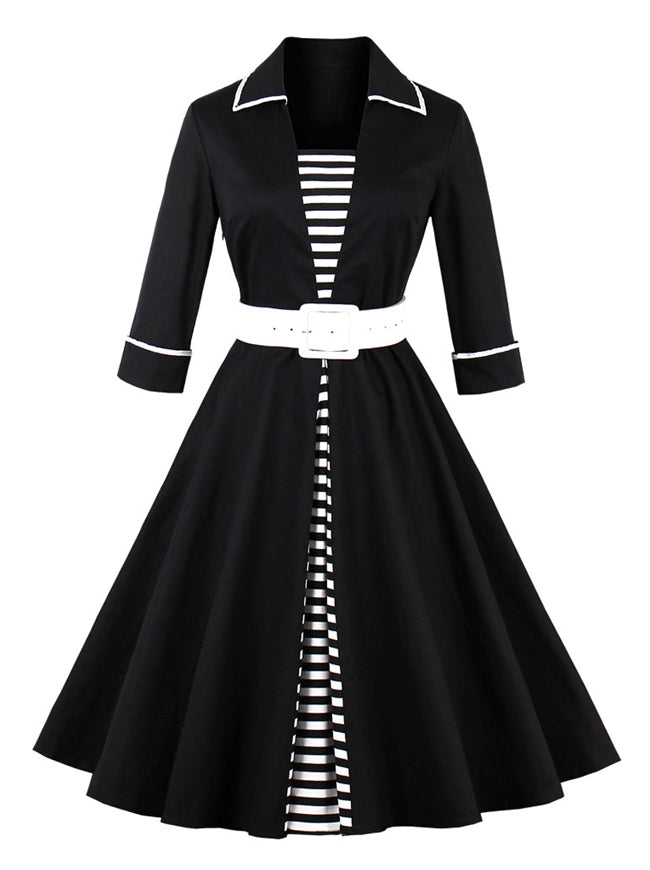 Half Sleeved Striped Patchwork Vintage Cocktail Dress