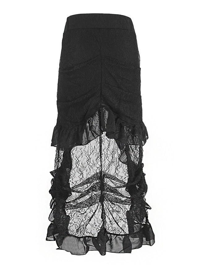 High Waist Victorian Steampunk Gothic Hi Low Skirt