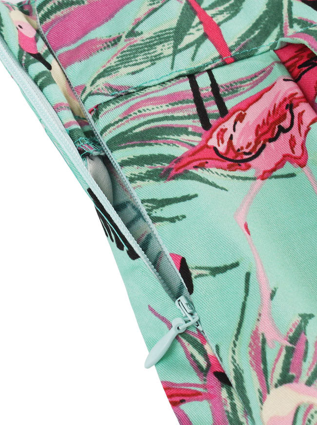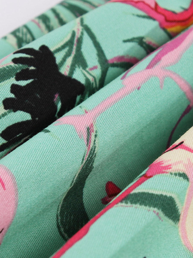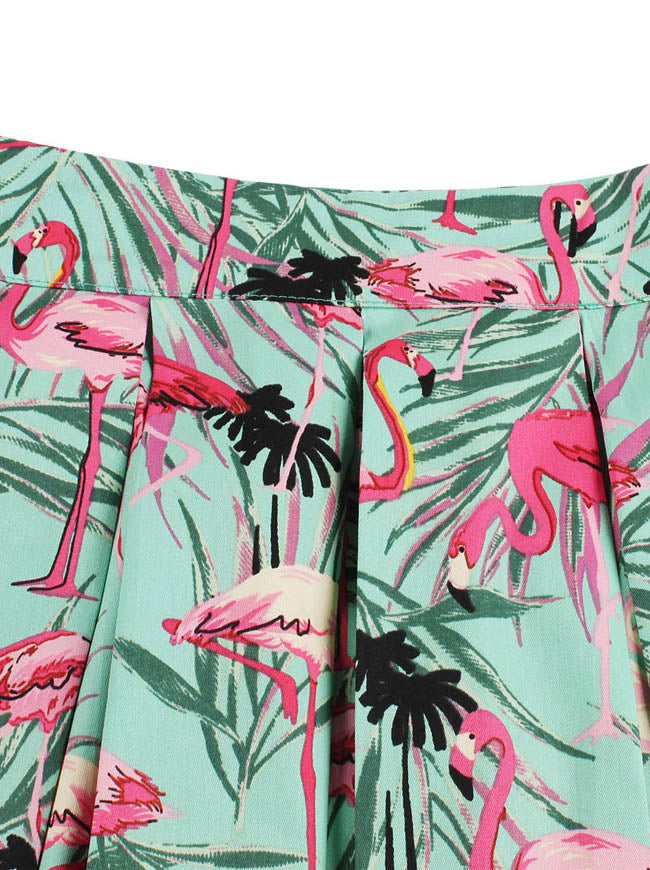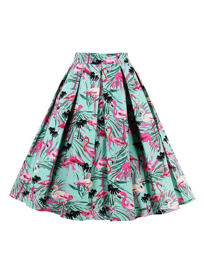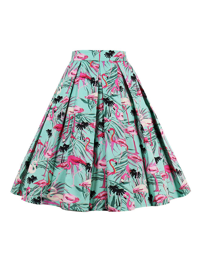 The Knee Length Skirt Features: Flamingo and Leaf Patterns, Classic Pleated Style, High Waist and A-Line Flared Design Fit any Body Shape, Concealed Zipper Closure. Great for Daily Casual, Party, Wearing to Work and other Occasion.
