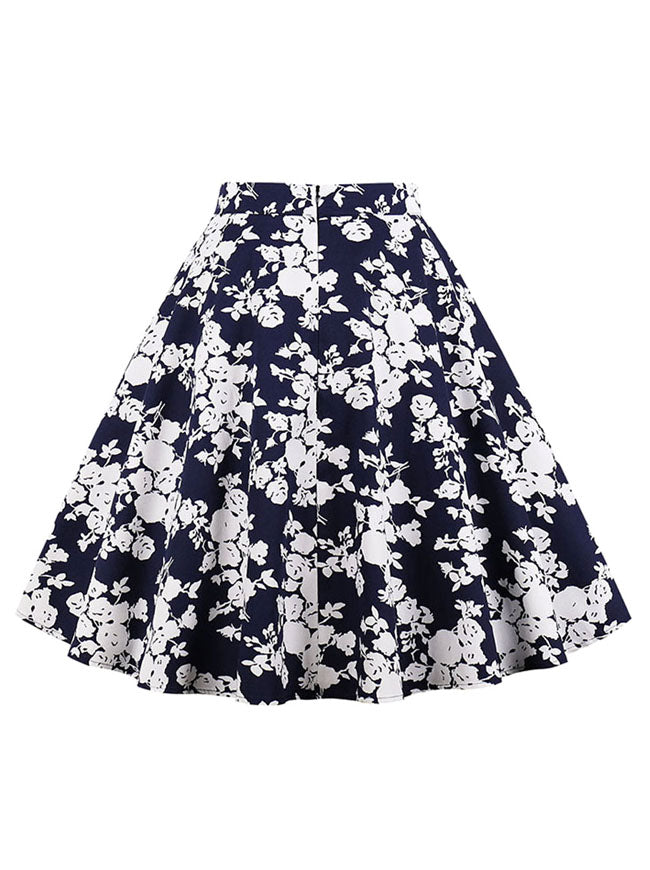 Classy Floral Printed Cotton Skirt, High Waisted, Zip at Back, Retro Style.