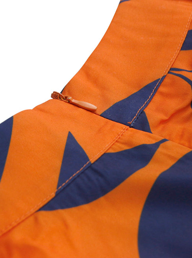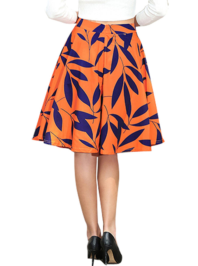 Retro Rockabilly Knee Length Leaf Print A Line Skirt