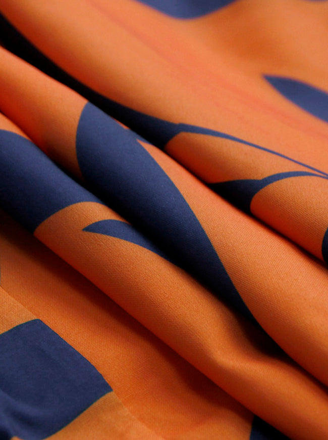 Unique Leaves Printed Cotton Skirt, High Waisted Design, Zipper in the Back, Retro Style.