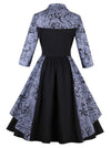 Retro Rockabilly Rose Print Cocktail Party Dress with Half Sleeve