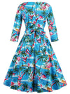 This gorgeous vintage dress featuring simple round neck design, 3/4 length sleeves, high-waist knee length, chic flamingo and plant print, with a waist bow belt at back, Hidden zipper at back. Great for daily wearing, dating, wedding, cocktail party and other occasions.