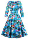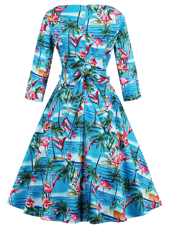 Retro Vintage Round Neck Flamingo Print A-Line Swing Dress