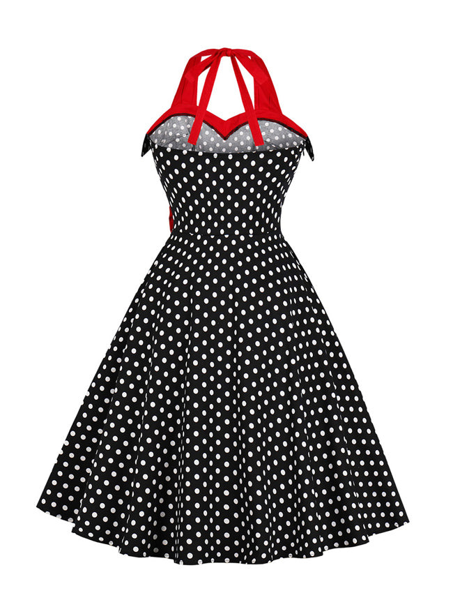 Retro Vintage Style Backless Halter Casual Cocktail Swing Dress