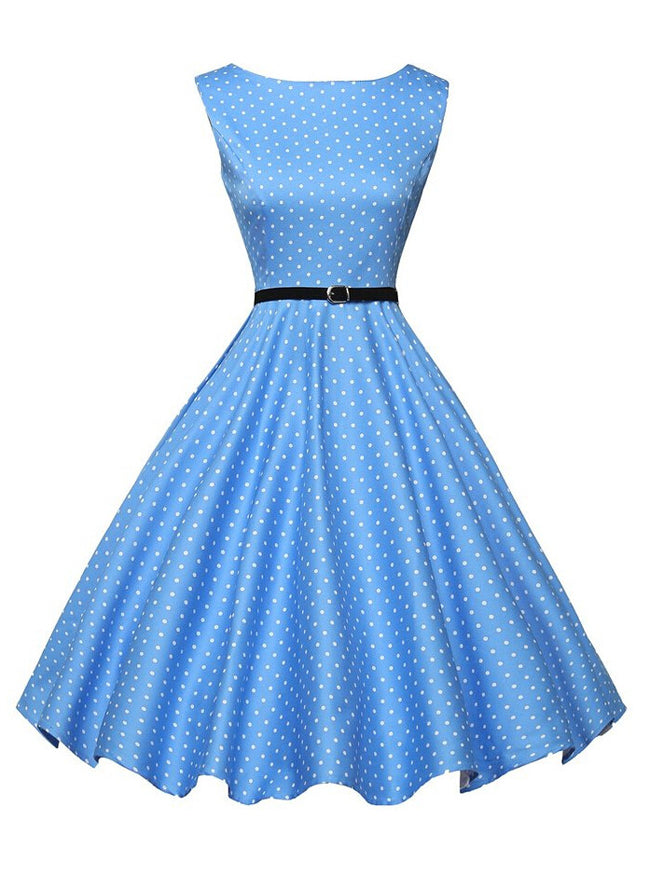 Rockabilly Polka Dot Print Vintage Casual Cocktail Party Dress with Belt