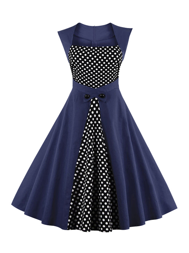 Sexy Polka Dot Patchwork Rockabilly Business Casual A-Line Dress