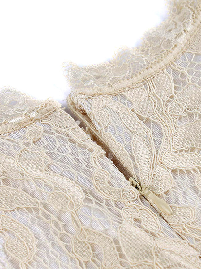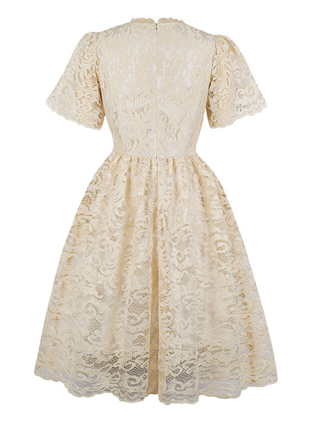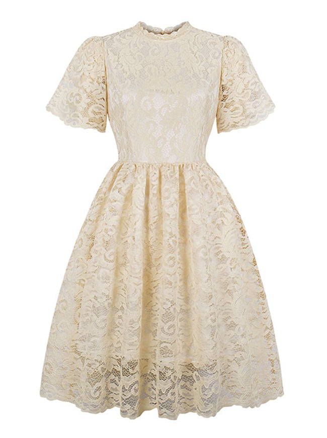 Short Sleeves Elegant Lace Swing Cocktail Bridesmaid Dress