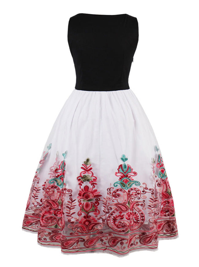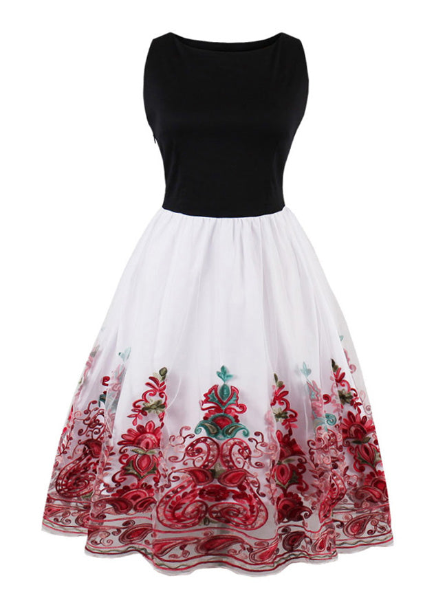 Sleeveless Elegant Floral Print Vintage Cocktail Party Dress