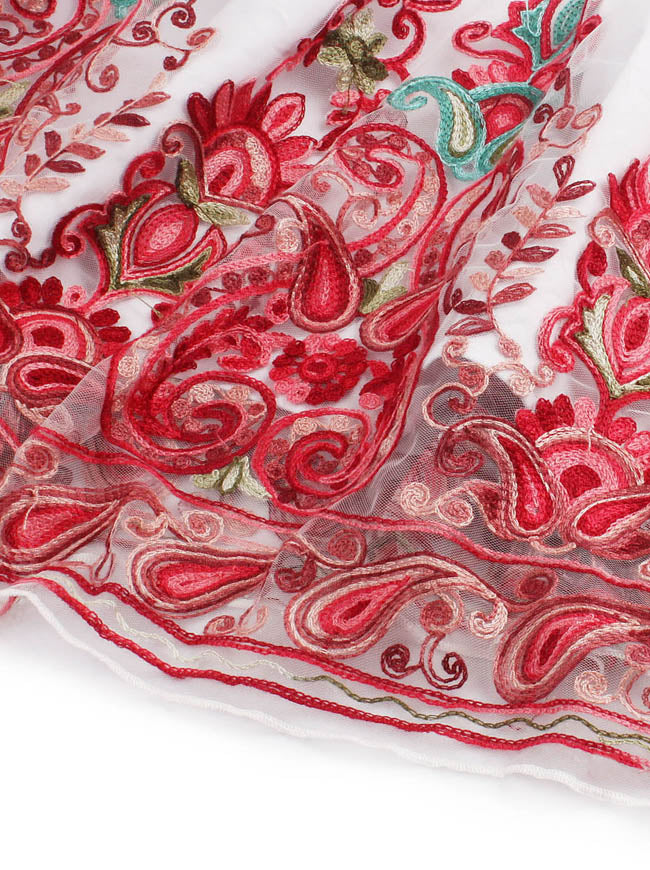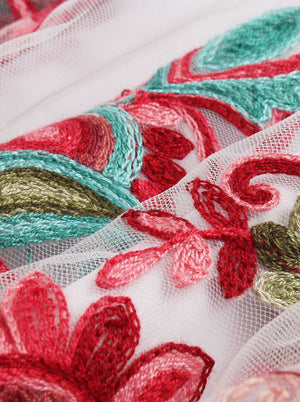 The Plain Bodice Joint Splicing with Organza Skirt that Embroidered with Unique Crochet Floral Pattern.