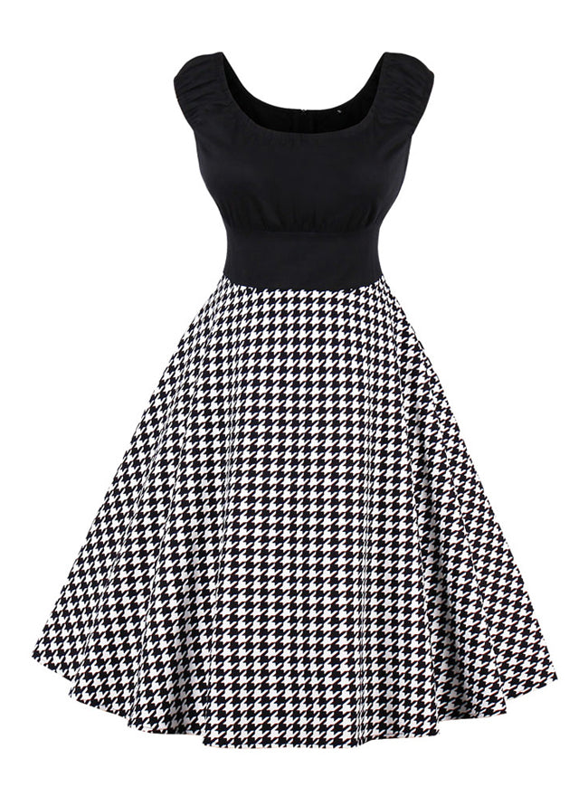 Sleeveless Fashion Houndstooth Print Rockabilly Vintage Tea Party Dress