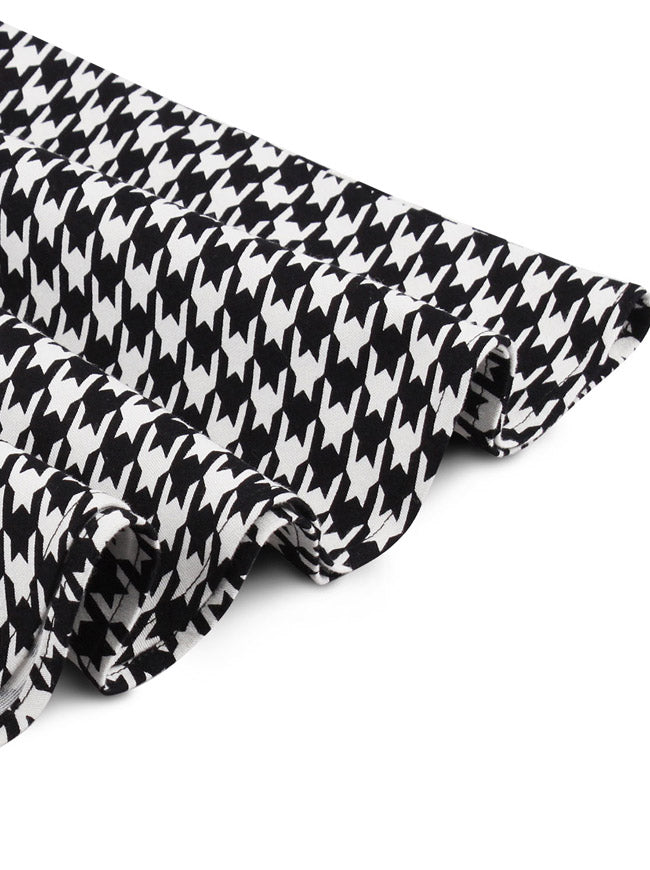 3.Plain Black Bodice Splicing Joint with Houndstooth Printed Skirt.
