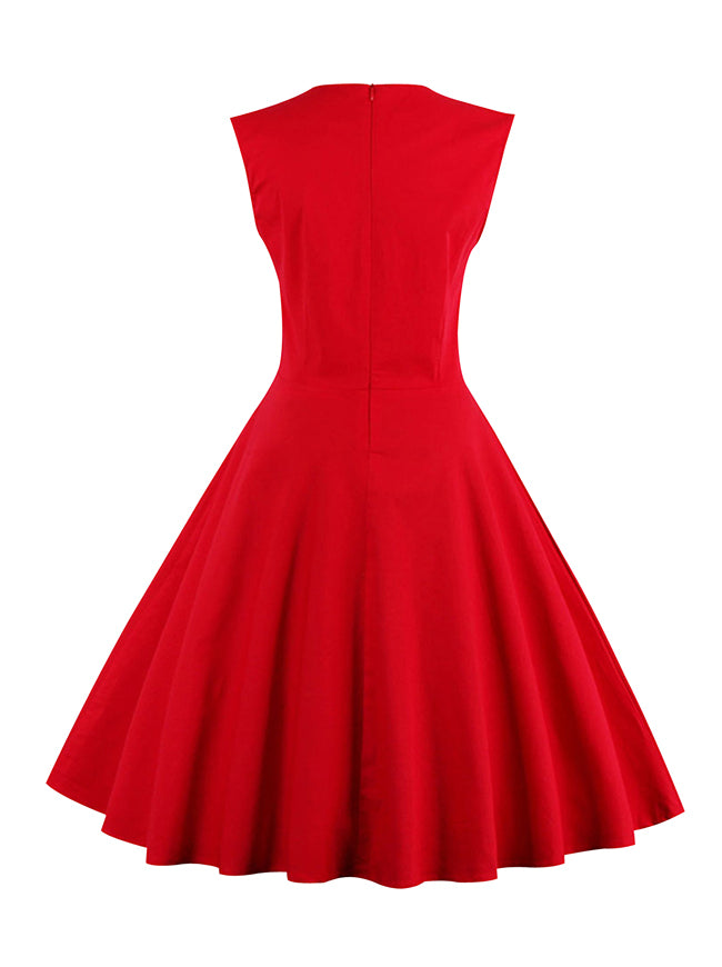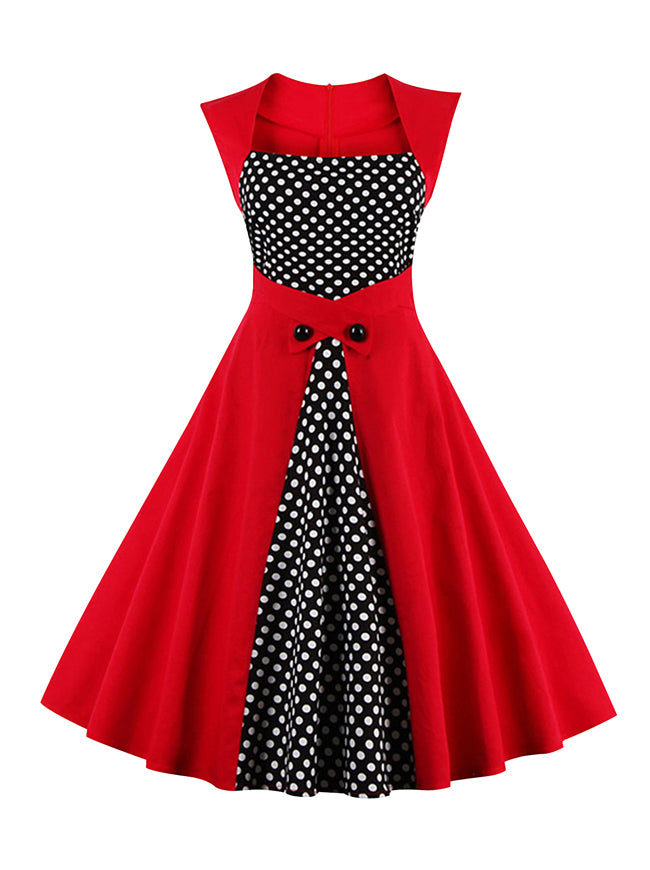 Sleeveless Retro Vintage Polka Dot Christmas Party Dress
