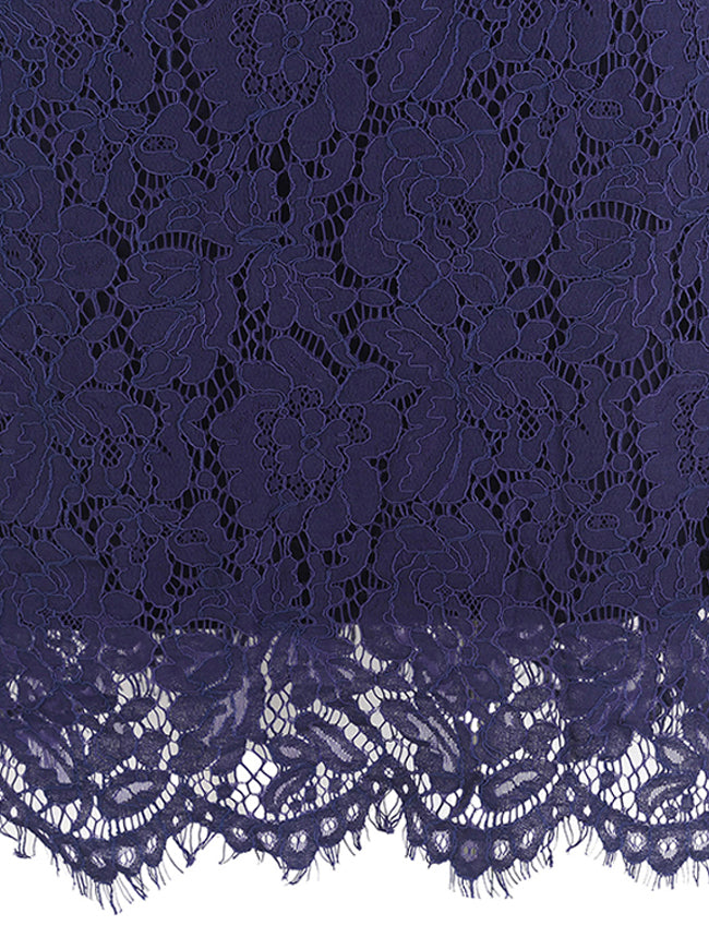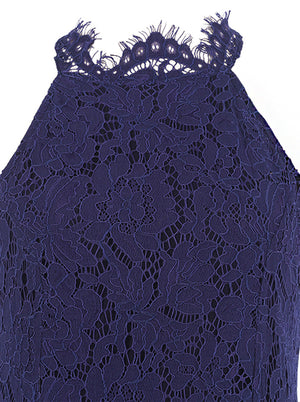 Sleeveless Full Lace Dress, Chocker Neckline with Buttons Closure, Cut Out Backless Design, Scalloped Hem, Zip in Back.