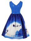 Sleeveless Snowman Printed Knee Length Flared Dress for Christmas Party