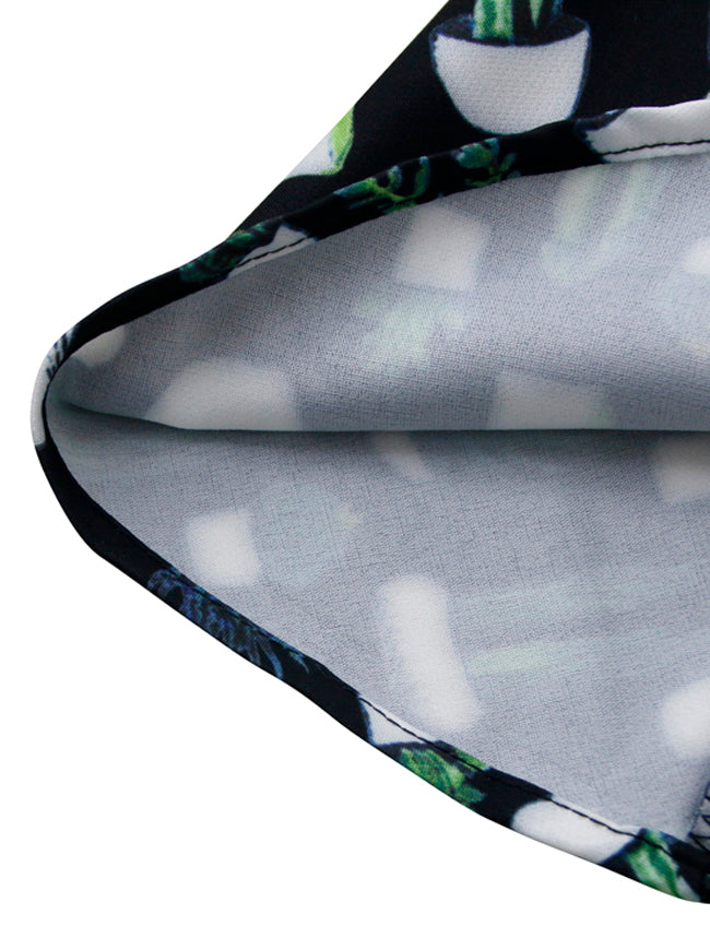 Sleeveless Spring Summer Casual Cocktail Cactus Print Swing Dress for Holiday