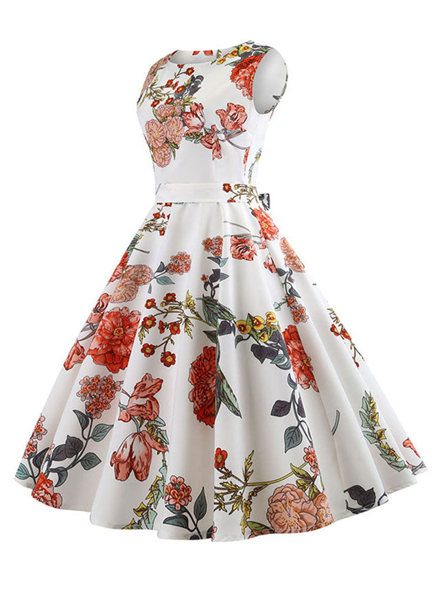 Sleeveless Vintage Style Floral Polka Dot Casual Swing Dress