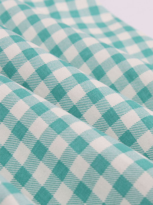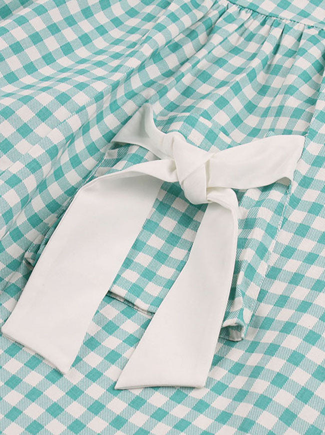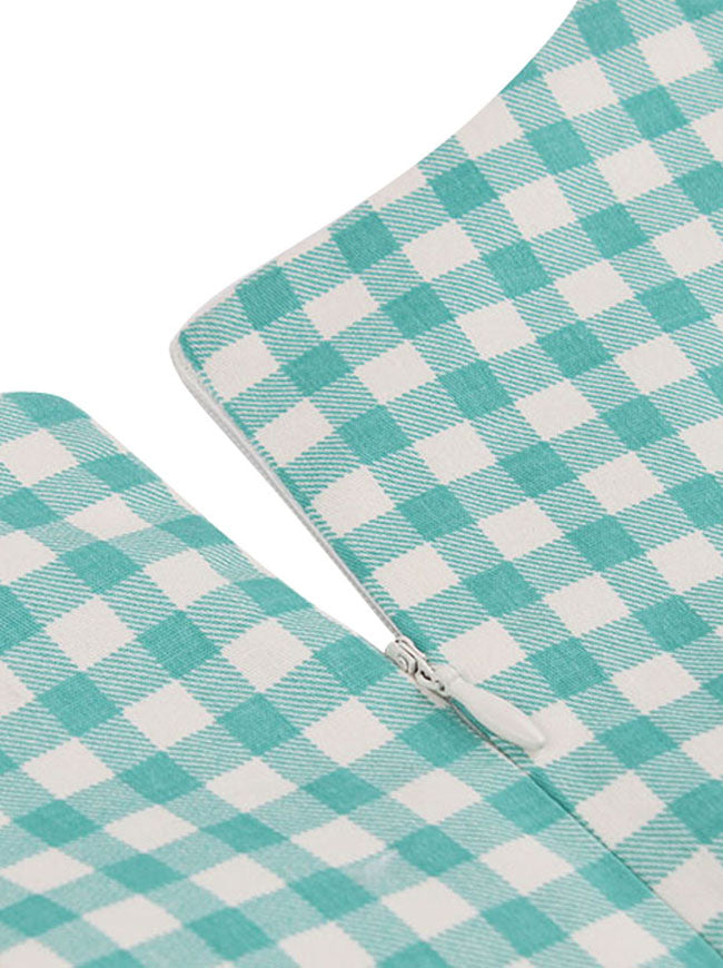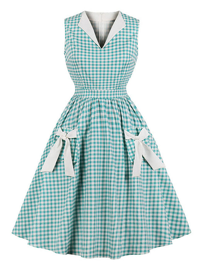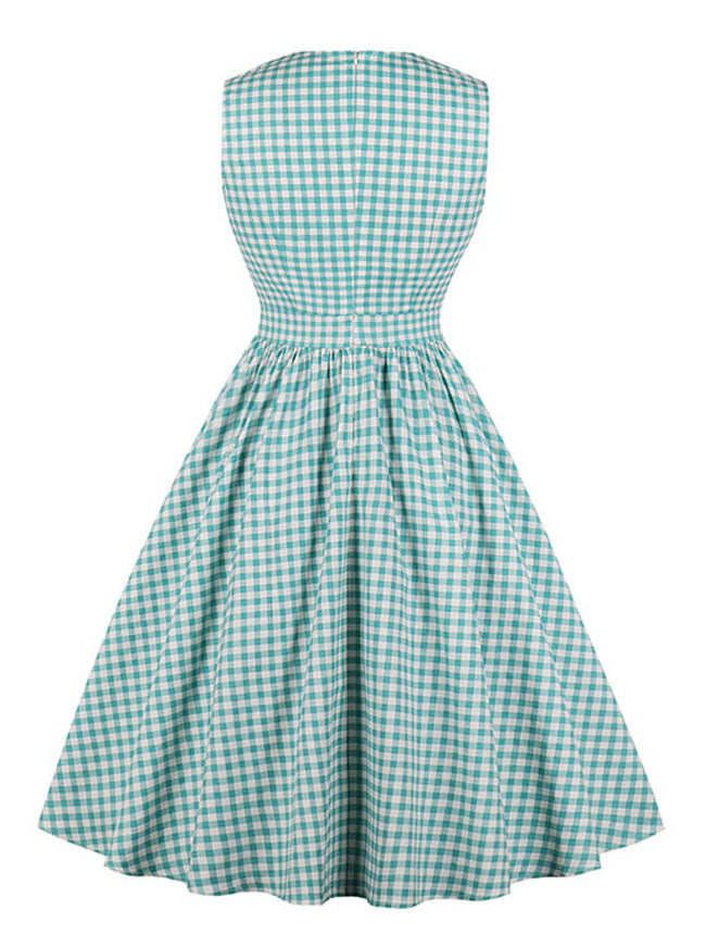 Vintage 50s Retro Sleeveless V-Neck Pockets Plaid Swing Dress