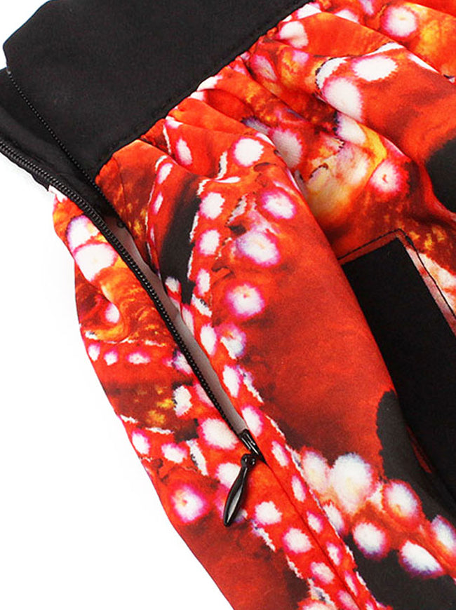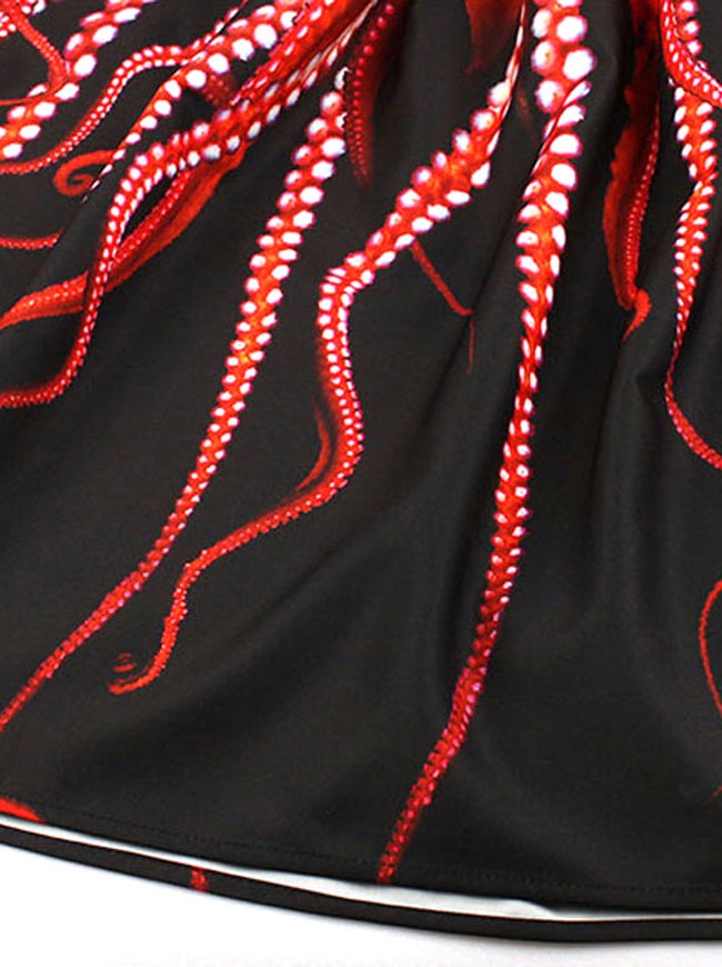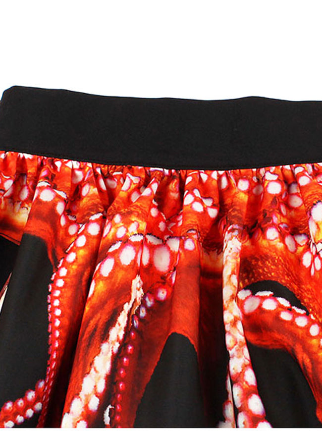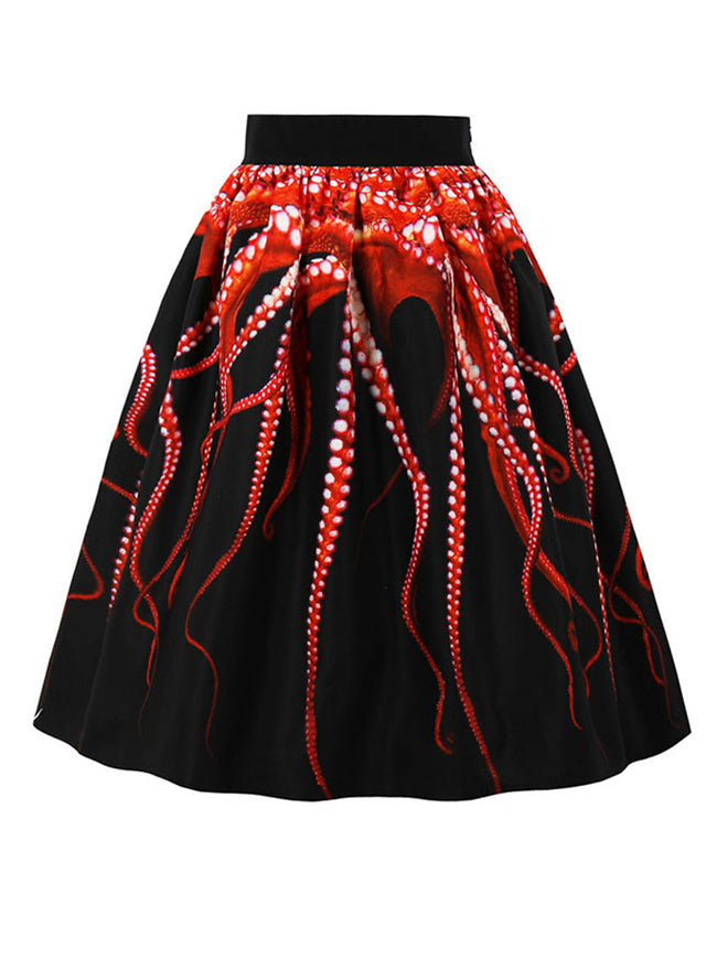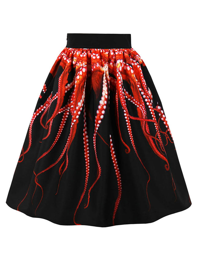 Vintage Casual High Waisted A-Line Octopus Printed Flare Skirt