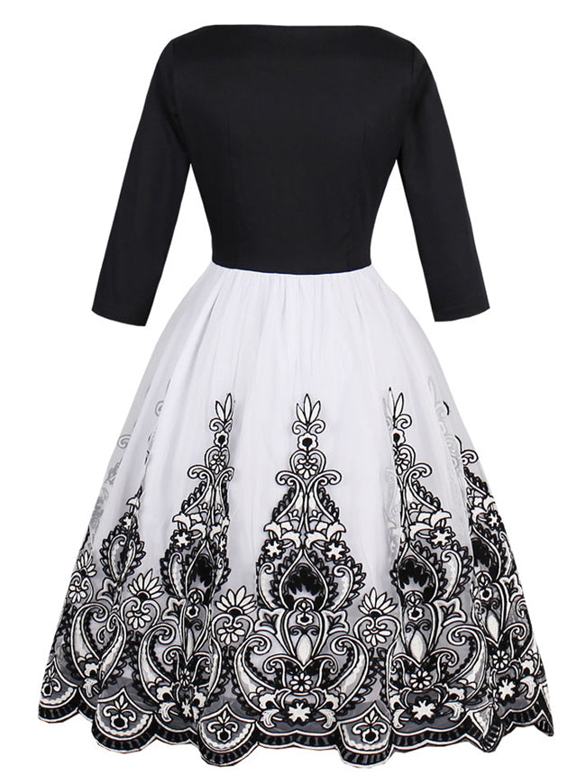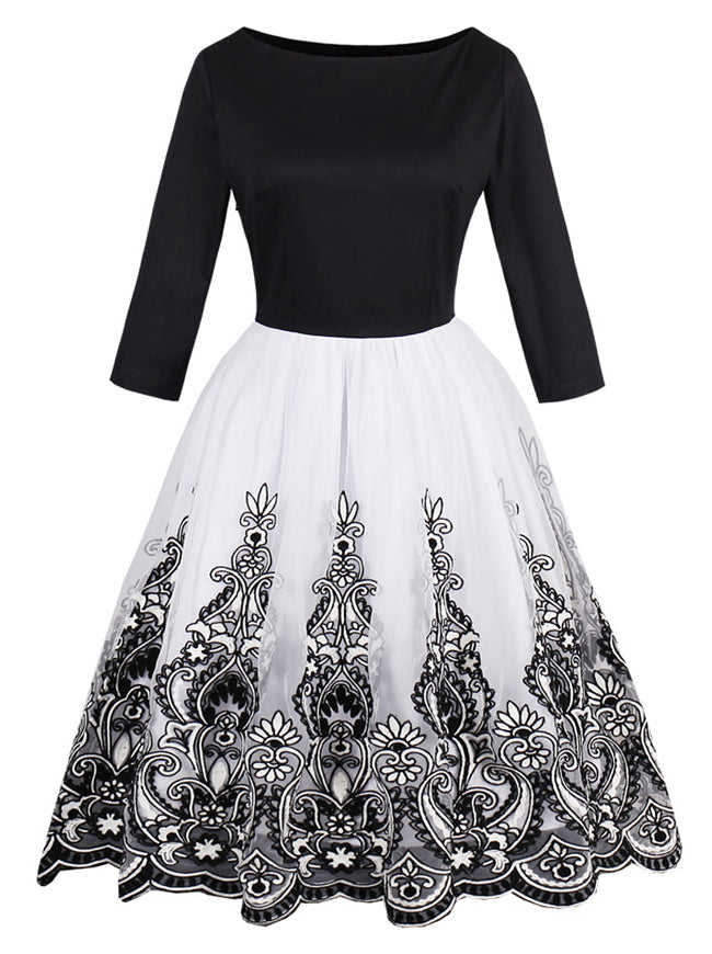 Vintage Half Sleeve Floral Print Wedding Party Bridesmaid Dress