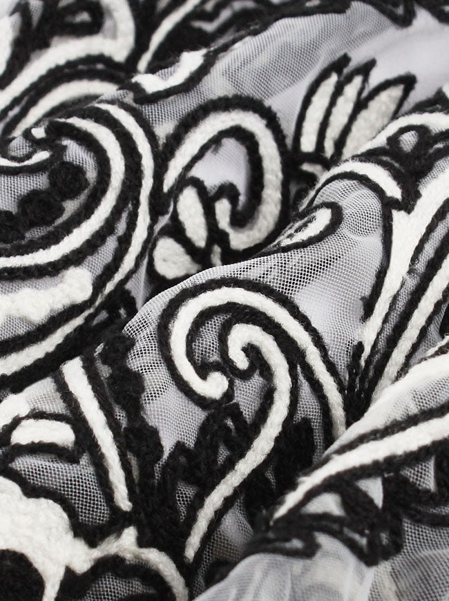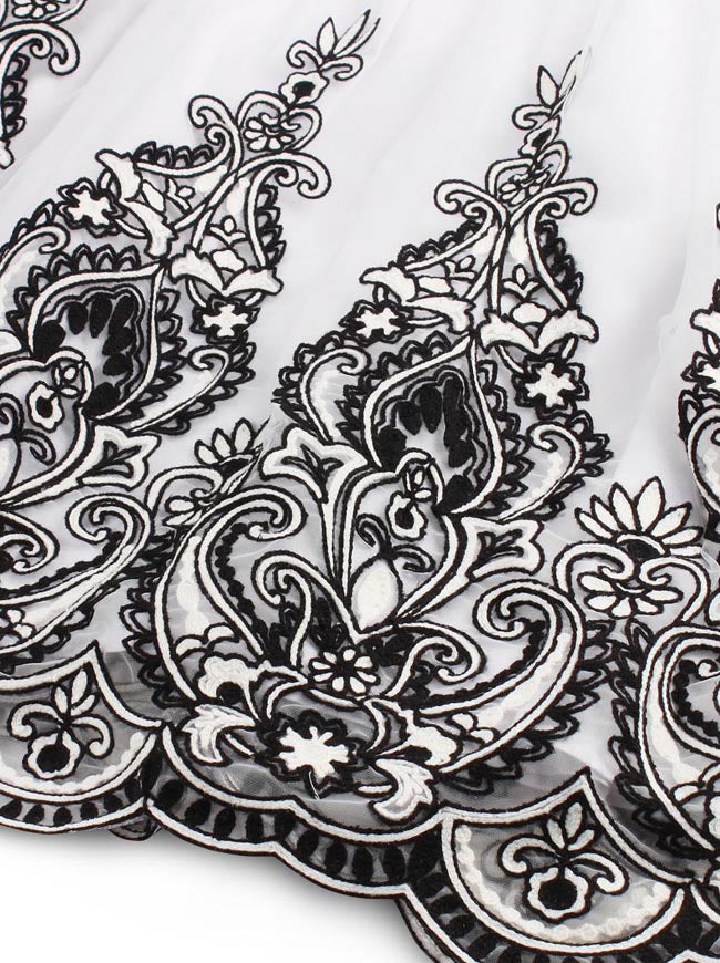 Organza Layered Skirt with Cotton Lining, Crochet Floral Patchwork around the Hem.