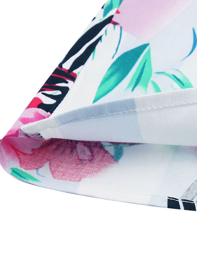 Vintage Half Sleeves Flamingo Floral Print Striped Pleated Dress