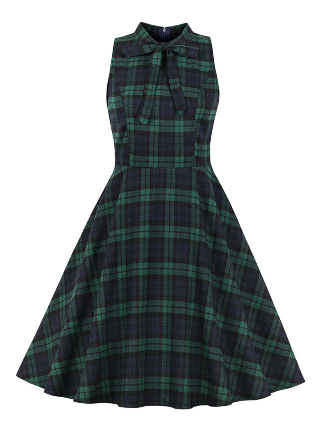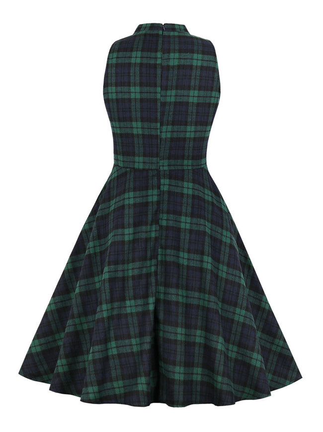 Vintage Retro Plaid Sleeveless Swing Dress with Pocket