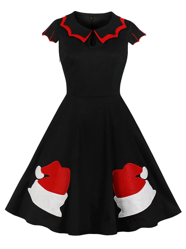 Women's Vintage Retro 1950s Short Sleeve Christmas Swing Dress